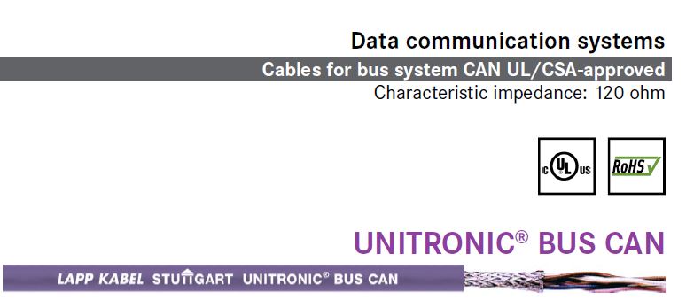 UNITRONIC® BUS CAN Size : 1x2x0.5 Part Number : 2170266 Brand : LAPP Kabel CAN : Controller Area Network ■ Application range UNITRONIC® BUS CAN ▯ Fixed installation ■ Product make-up UNITRONIC® BUS CAN ▯ 0.22 + 0.34 + 0.5: bare stranded conductor,7-wire 0.75: bare stranded conductor, fine-wire ▯ Colour-coded in accordance with DIN 47100… selengkapnya